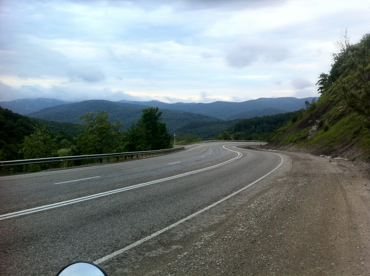 Дальнейший путь лежал до развилки у станицы Павловская, где мне предстояло решить, куда двигать дальше – в направлении Сочи, куда меня давно звал в гости Серёга Бугров, а потом уходить на Майкоп, или поехать по а/д Кавказ на Кисловодск, где я предполагал пересечься с Романом Цапиком, с которым мы держали связь с самой Москвы. Однако ситуация на Ставрополье, не смотря на то, что ЧС уже отменили, пока оставляла желать лучшего – постоянно лили дожди. Поэтому я решил двигаться вдоль Кавказского хребта с запада на восток. Не доезжая до Краснодара, я свернул в сторону Джубги. Проехав Горячий Ключ, я стал искать место для ночлега. К вечеру стало прохладно, тем более я поднимался в горы, а там всегда температура ниже, чем внизу. По пути я потерял дождезащитный чехол от сумочки для документов из-за привычки поправлять рукой сумку. Видимо зацепил чехол и его сдуло ветром, когда я ехал в стойке, давая отдохнуть пятой точке и спине. Стало понятно, чего мне сигналили по пути в одном месте. Впрочем не велика потеря. Вся эта мелочь уже не имела значения – я был в горах, и это поднимало мне настроение.