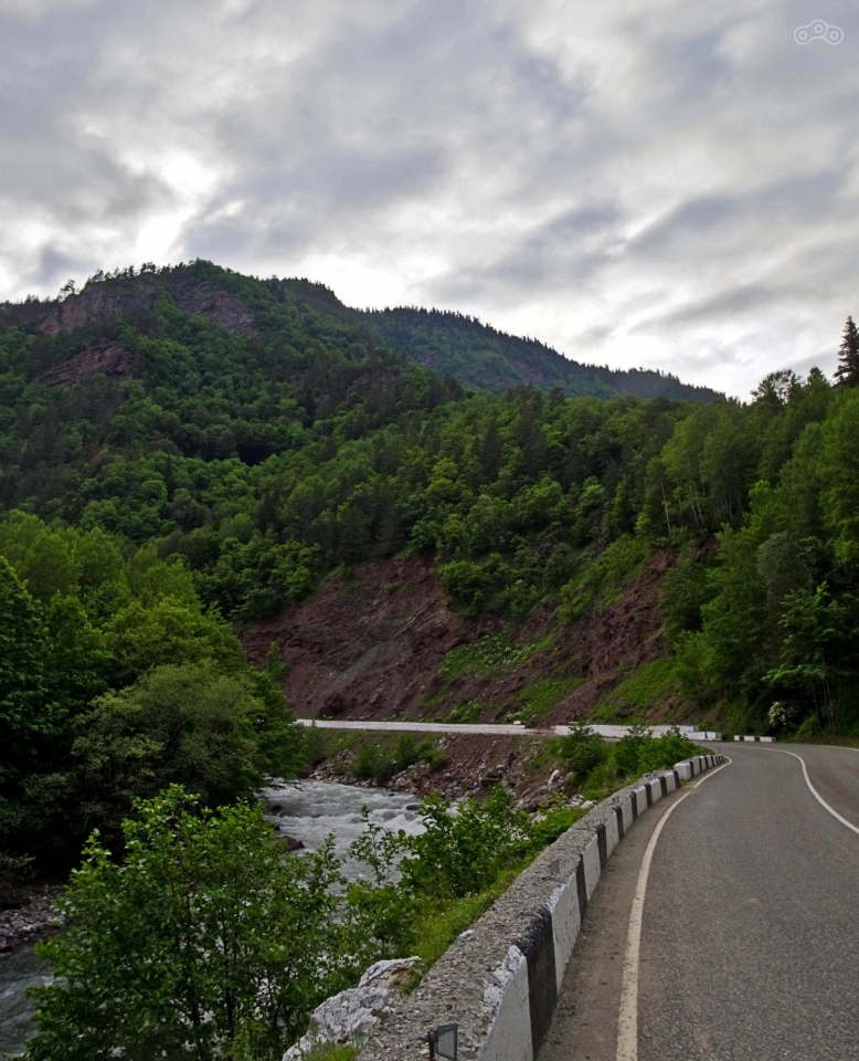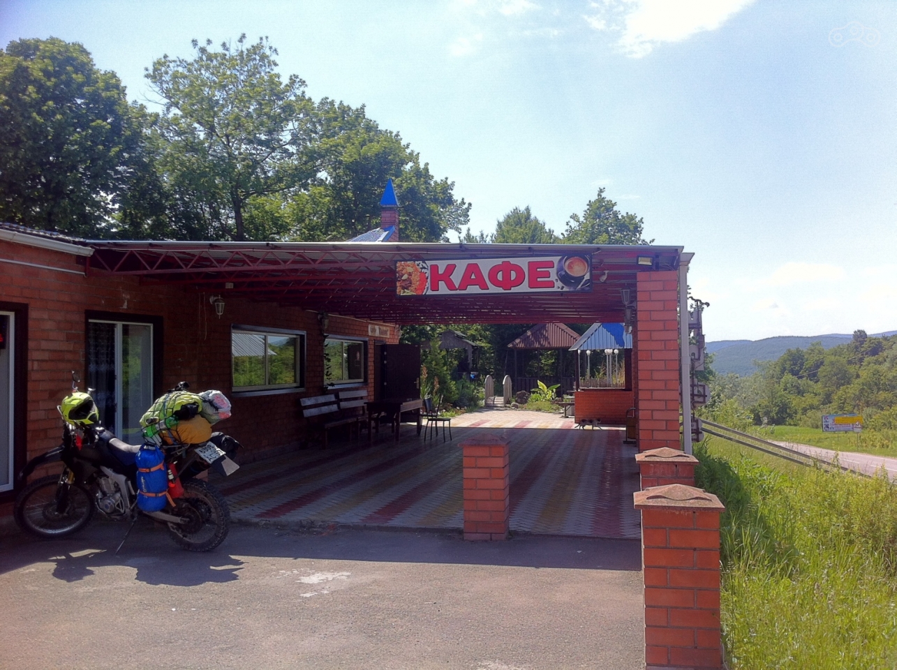 Пытаться снова забраться наверх я не стал, не было настроения штурмовать грязь. Я стал спускаться к трассе, и вдруг на одном из поворотов мне навстречу прожужжал китайский эндурик Irbis XR250R или один из его «родственников». Я улыбнулся и поприветствовал собрата. Откровенно говоря меня удивляло, что в этих местах так мало мотоциклистов. Я снова вышел на трассу и, почувствовав настойчивые намёки желудка, что неплохо бы подкрепиться, остановился в армянском кафе возле Аше. Высокие цены уже не стали для меня неожиданностью – порция винегрета, и кофе с молоком обошлись мне в целых 200 рублей.