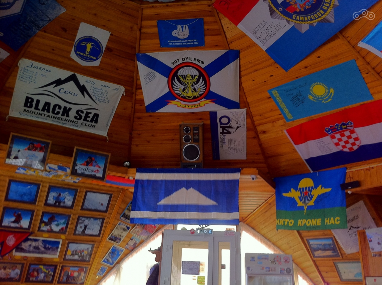 Организм настойчиво требовал пищи, и я прокатился до поворота на поляну Чегет, где находится приглянувшееся мне с виду кафе Friends. Оно выглядело уютно и не дорого, по крайней мере снаружи. Кафе оказалось и внутри уютным, с домашней атмосферой. Меню дешевле московских кафешек, но дороже столовых, в принципе цены приемлемые для меня. Манты например обошлись 250 рублей, вкусные и большая порция, и кофе неплохой. В кафе есть вайфай, который не требовал авторизации – ввёл пароль и вот тебе интернет. И вообще по всему было видно, что тут не любят формализм и понты, поэтому мне там сразу понравилось. За соседним столиком сидел парень с ноутом и судя по всему работал, а за другим сидела компания – два парня и две девушки в типичных трекинговых одеяниях и чёрных майках с надписью «Гонка героев». Они обсуждали своё последнее восхождение, восхищаясь выносливостью парня с ноутом, совсем не выглядевшим как спортсмен. Тот же лишь молча усмехался.