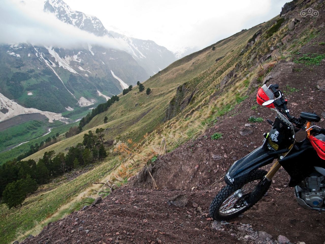 Я доехал до поляны Чегет и увидел единственную грунтовку, уходившую в гору, не закрытую шлагбаумом. Я стал подниматься, но на первом же повороте жестко обломался в планах. Подъём на Чегет с самого низа был абсолютно мокрым, по дороге обильно текли ручьи, делая грунт скользким, а через 200 метров после разворота поперёк дороги лежал огромный расколовшийся валун. Но если валун объехать ещё можно было попытаться, то пытаться пробираться по мокрому чернозёму на моей уже изрядно полысевшей резине я не стал. У меня не было желания получать эндурные физнагрузки, я хотел лёгкого ненапряжного катания. Тогда я решил прокатиться до альплагерей Джан-Туган и Уллу-Тау, однако и тут меня ждал облом. Я повернул из Тегенекли на Джан-Туган, проехал немного по очень крутым асфальтовым поворотам и увидел пост со шлагбаумом и табличкой, что нужен пропуск. Потом уже мне объяснили, что пропуск выписывают прямо там на посту, но тогда я этого не знал, развернулся и уехал обратно. А почти сразу за поворотом из Верхнего Баксана на Уллу-Тау я уткнулся в грузовой подъёмник, который стоил 500 рублей вверх и столько же вниз. Причём там высоты в том подъёмнике не особо много, но это единственный путь наверх. На подъёмнике стояла грузовая военная машина и несколько солдат. Как оказалось, одного из них я ранее видел, когда гонял в посёлок Эльбрус на заправку. Он гонял на кроссовом Kawasaki и я ему тогда рукой помахал, а сегодня он меня узнал. Я счёл, что для 1000 рублей я найду применение получше, и стал придумывать новый план.