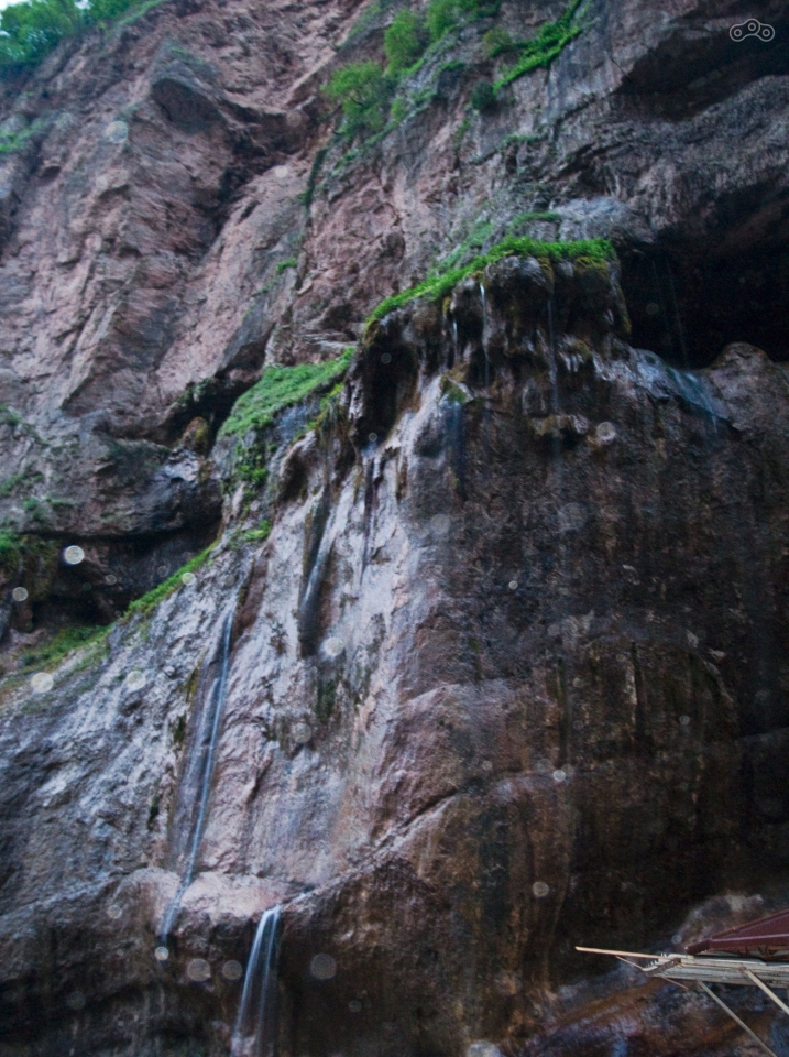 Я зашёл в супермаркет, снял налички, купил минеральной воды и поехал обратно. По пути я свернул в поворот на Чегемские водопады, указатель на который я проскочил по пути в Нальчик. Дорога туда ведёт через деревни и местами довольно разбита. В деревнях мне детишки приветственно махали руками, я отвечал им тем же, стараясь громко не газовать – в этом тихом спокойном месте совсем не хотелось шуметь. К тому моменту, как я доехал до водопадов, уже смеркалось, поэтому задержаться там особо не получилось. А жаль, потому что место очень живописное. Водопады там не простые, вода стекает практически по всей скале в ущелье, образуя множество маленьких водопадиков. Смотрится фантастично. Напротив водопадов есть кафе, я правда не знаю, что там с ценами.