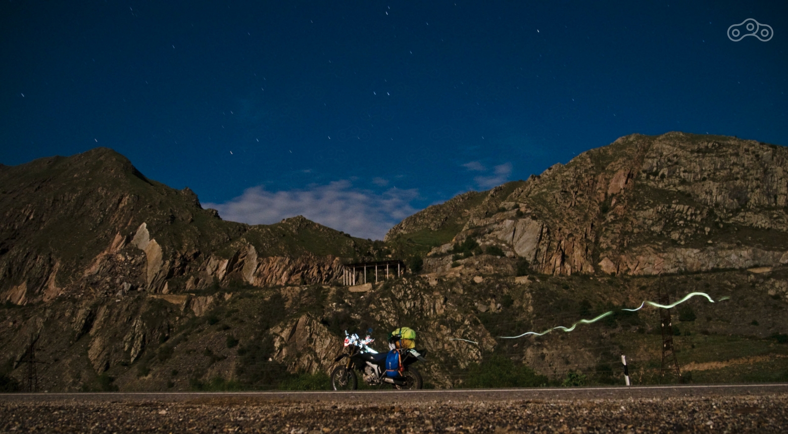 Я сделал пару попыток фотографировать, но быстро понял, что при таком освещении нужен штатив. Тогда я сел на мотоцикл и помчался обратно. В Баксанское ущелье я въехал в темноте, но ночь была ясная и лунная, что лишь прибавляло красоты ландшафту. На подъезде к Тырныаузу я обратил внимание, что на другой стороне реки Баксан есть старая заброшенная дорога типа той, что была в Сочи, но намного длиннее. Я сделал себе заметку в голове, что надо разузнать насчёт неё.