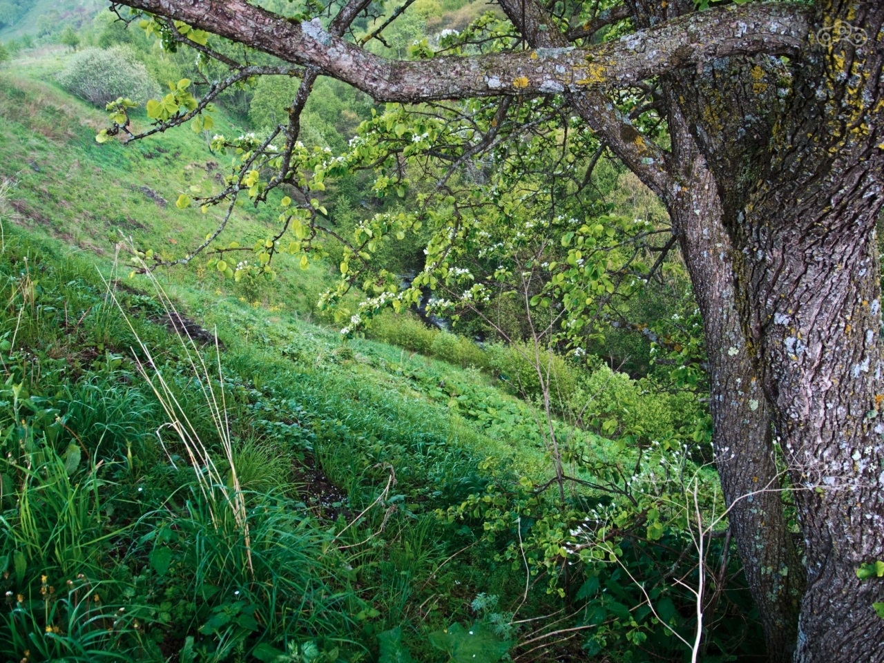 Я ошибся. Утро началось с гостей. Разбудил меня звук мотора - к моей палатке подъехал пожилой мужичок на 41-м москвиче и стал расспрашивать, кто я и что там делаю. Всё разузнав, он ничего не сказал, развернулся и уехал. И ведь не лень же было по полю 500 метров ехать, чтоб вопросы позадавать! Я уж не говорю о том, что он меня разбудил. Спать уже не хотелось, поэтому я стал потихоньку собираться. Вдалеке в горах явно поливал дождь. Я посмотрел прогнозы и понял, что Архыз и Домбай придётся оставить на потом – в ближайшие дни там обещали ливни. Я стал собираться, в расчёте доехать до Приэльбрусья, пожить там пару дней и потом вернуться на Архыз и Домбай. Пока я собирался, со стороны станицы Сторожевая пришёл пастух с лошадью под уздцы (пешком почему-то пришёл), тоже позадавал дежурные вопросы. Я вежливо ответил, но такое повышенное внимание к моей персоне уже начинало настораживать, пора было валить дальше. В горах погода меняется часто и быстро, пока я собирался, дожди обошли меня стороной, оказавшись за спиной. Я порадовался этому, потому что мокнуть совсем не хотелось.