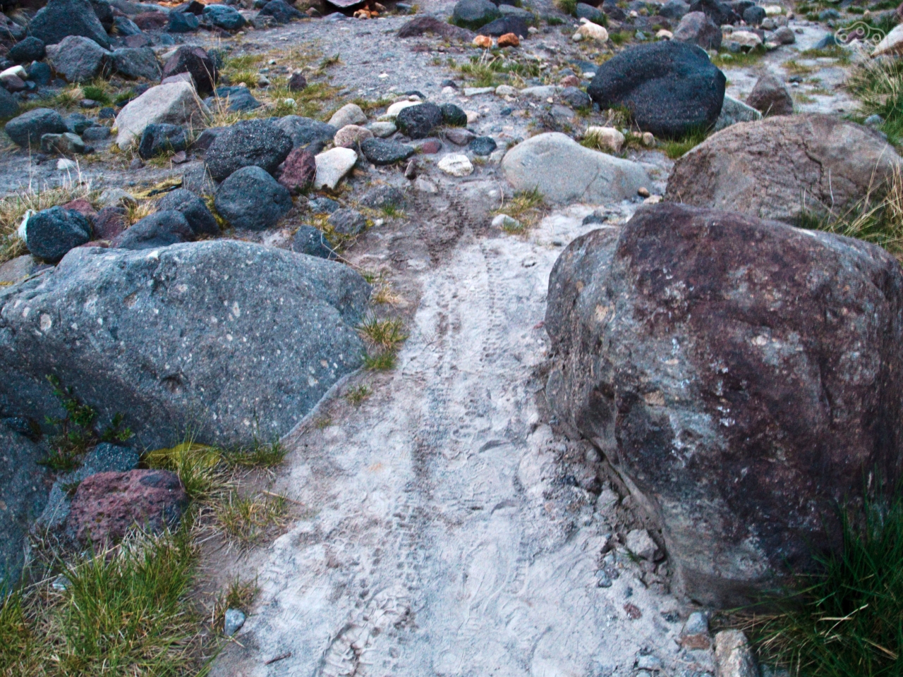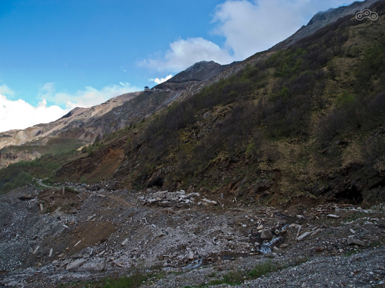 Через пару километров внезапно снова начался подъём. Он часто пересекался ручьями, но большая часть ручьёв была убрана в бетонные кольца. Внезапно передо мной оказался подъём такой длины и крутизны, которых я ещё не ездил никогда. У меня были большие сомнения, что мотоцикл сможет затащить меня в этот подъём. Он был сильно разрыхлён тяжелой техникой (видимо расчищали после обвала). Дорога состояла из множества камней разного калибра и рыхлого чернозёма. Радовало только то, что на нём было сухо, иначе пришлось бы разворачиваться, ведь других дорог тут нет. Основные сомнения были по поводу уже более чем на 50% изношенного заднего баллона и топливной смеси. На такой высоте вверх ехать получалось только на первой передаче. По прямой ещё как-то можно было ползти на второй, а вниз даже воткнуть третью.