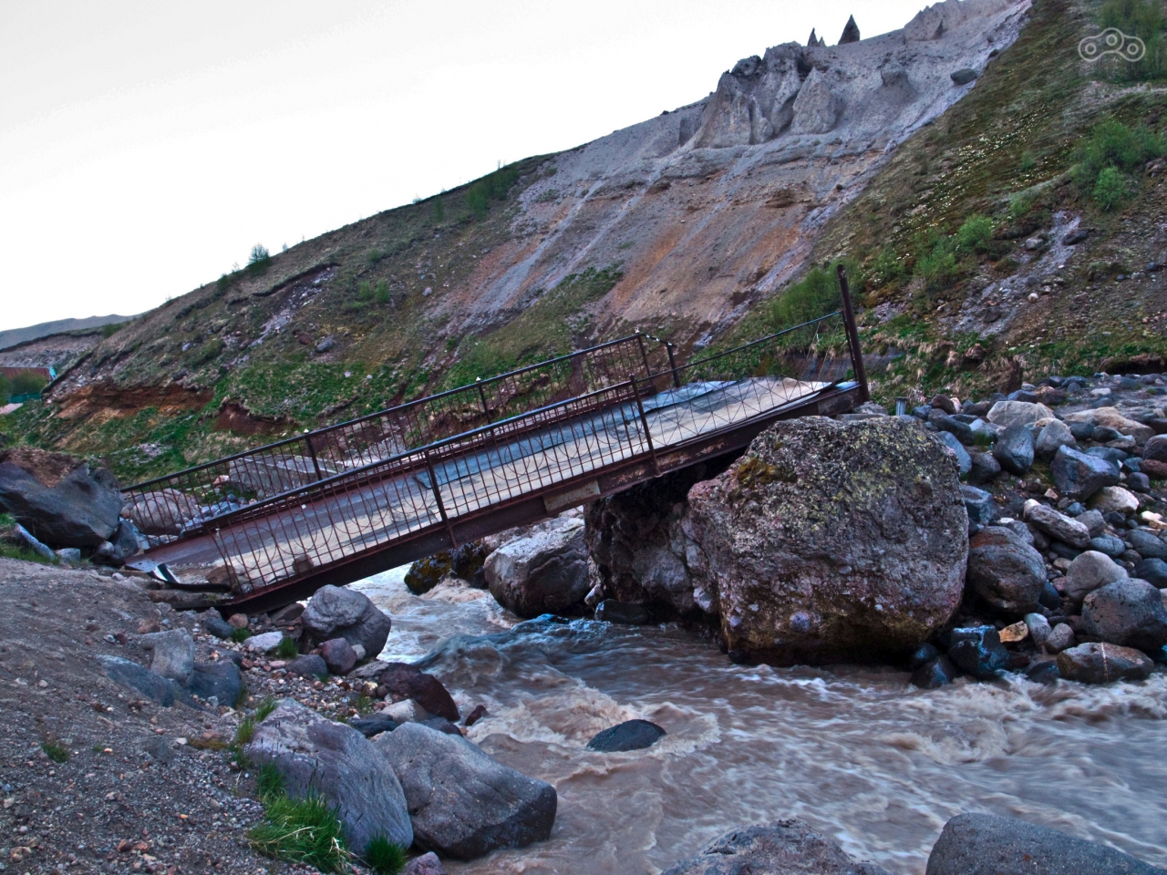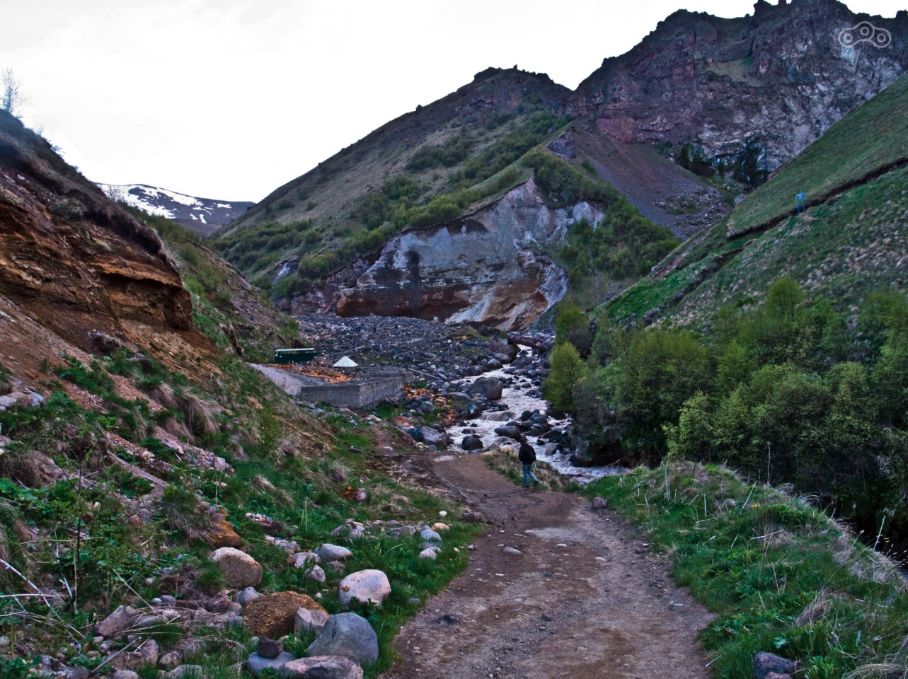 Время было уже позднее, солнце почти село. Я хотел снять контейнер, но мне пришлось подождать, пока администратор, который вместе с товарищами ремонтировал трубу возле водопада, сломавшуюся во время обвала, вернётся в лагерь. Я побродил вдоль реки, разведал где купальня и основные источники. Выяснил, что связи тут нет, но можно поймать пару палок Мегафона, если сходить на холм возле дома начальника всего этого безобразия. Причём совсем недалеко на горе находилась мегафоновская сотовая вышка, но она не работала, потому что питается она от дизельного генератора, а ДТ кончилось и привезут только на следующей неделе. Я дошёл до холма, отправил сообщение близким, что в ближайшие пару дней буду без связи, и вернулся в лагерь.