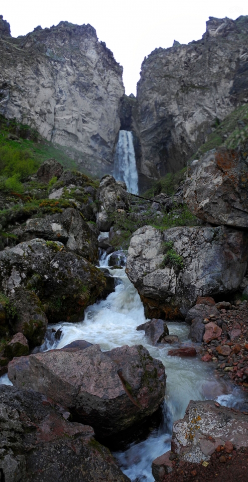 Кстати, вода в купальне вовсе не горячая, как многие думают, а всего 24 градуса по Цельсию. А находиться в воде больше 15 минут за раз не рекомендуется, также как погружаться больше чем по грудь. Но об этом нигде на источниках не написано, инфа передаётся из уст в уста приехавшими на лечение. Часы правда возле купальни висят и даже работают. Сидеть в воде было совсем не холодно, гораздо холоднее было потом из купальни выбираться, ведь температура воздуха была ниже температуры воды. В купальне в скале была дыра, откуда мощными пульсациями выплёвывалась вода. Получалось что-то типа гидромассажа. Правда никаких положительных изменений в спине я не ощутил, скорее наоборот. А вот ЖКТ действительно очень благосклонно отнёсся к воде из «желудочного» источника. Причём вода, когда наливаешь её в бутылку, была прозрачная. Но через какое-то время она мутнела и теряла вкус, и скорее всего часть лечебный свойств. Кстати, она совсем не газированная. Среди источников был один родник, у которого не было вокруг рыжего налёта, но вода на вкус тоже была минеральной. Эта вода текла по той самой трубе, идущей от водопада, которую чинили ребята в мой первый вечер на Джилы-су, и я использовал её для умывания и чистки зубов. Впрочем и сюда добрались мажоры со своими понтами. Один из туристов стал спрашивать, где можно набрать обычной питьевой воды, однако когда ему рассказали, где есть неминеральный родник, он сказал, что родник выглядит так, что пить он из него не станет.