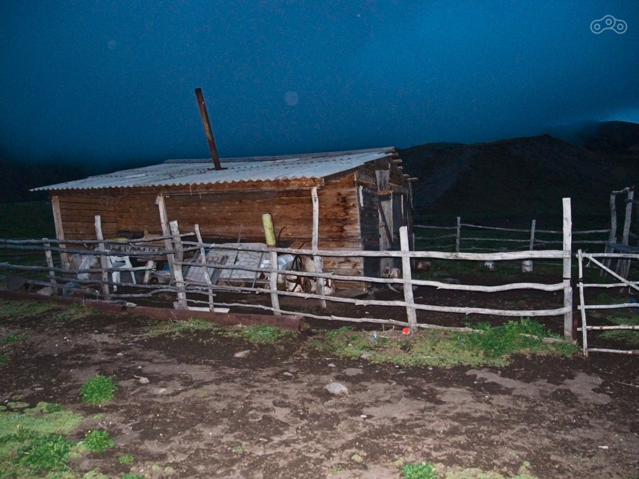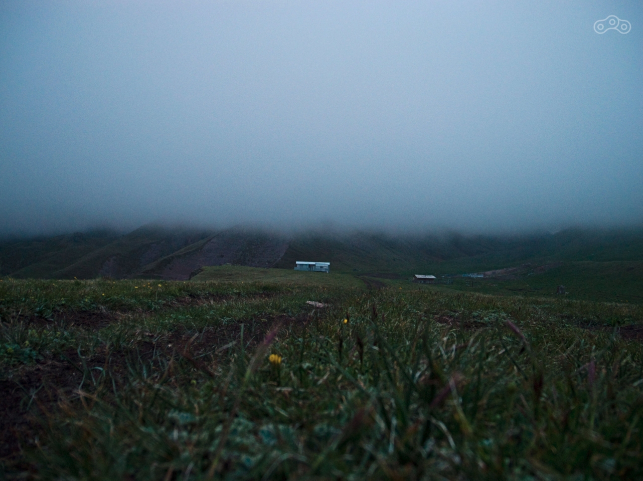 К вечеру первого дня дожди на время прекратились, и после купания в купели я прогулялся до холма, где на MAPS.ME значился ещё один Кош. Там оказалась ещё одна группа запертых контейнеров, объединённых в единый дом, и деревянная кошара. Как рассказал дядька из Кисловодска, они как-то раз жили в том месте, правда договаривались об этом заранее ещё в городе. Вокруг этого места валялся бытовой мусор, и это было первое место, где был срач, после той стоянки в Адыгее на трассе, где я менял свечу. В остальном везде было чисто. К тому моменту, как я туда дошёл, горы начало заволакивать тучами, явно собирался ещё один дождь. Я поспешно ретировался в контейнер и попытался уснуть.