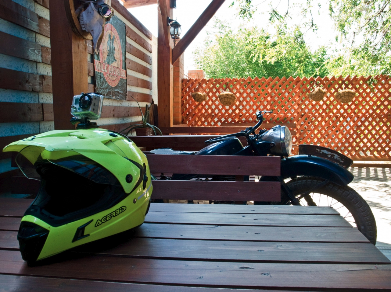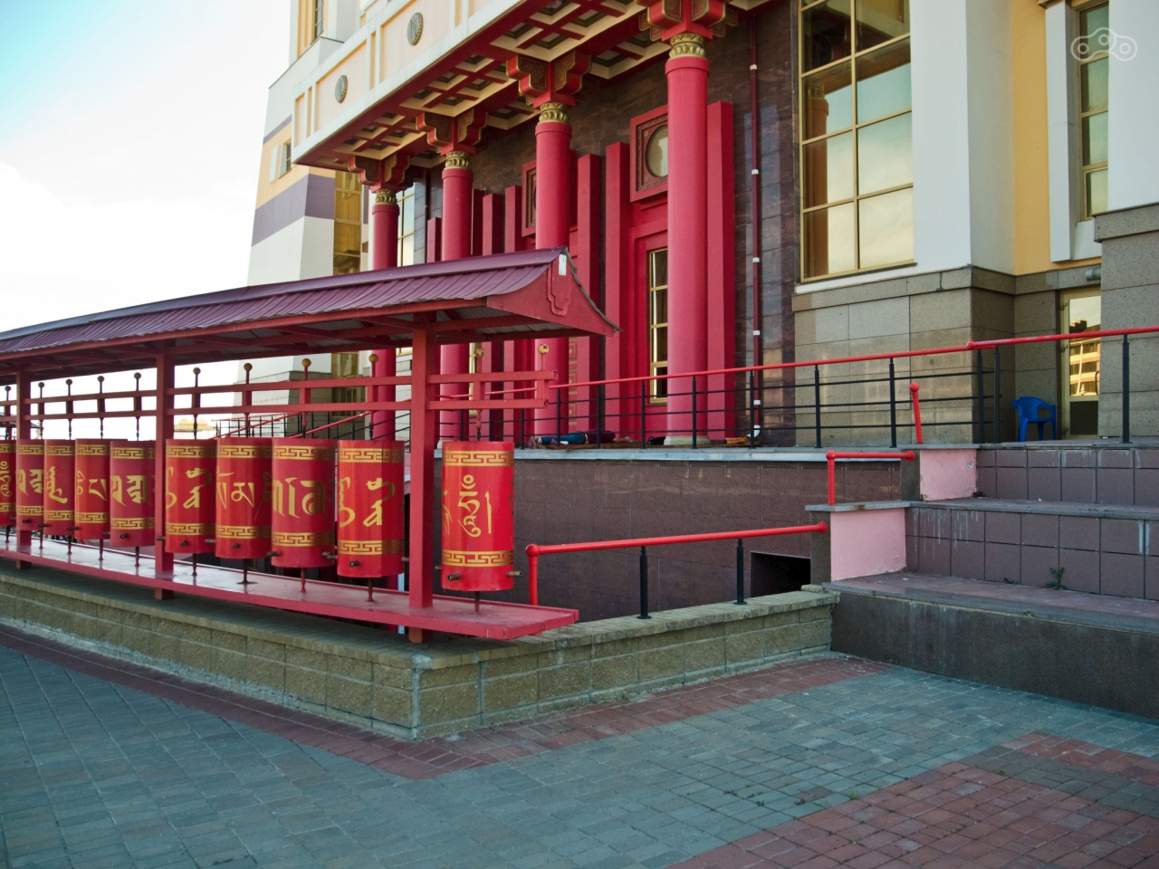Пока я отдыхал в теньке крыши АЗС, ко мне в очередной раз подошёл любопытный местный житель и начал задавать классические вопросы, но задавал он их в такой форме, что я отвечал грубо и быстро закончил разговор. После заправки, я доехал до храма Будды, припарковался и пошёл прогуляться по территории. На территории ко мне подошёл невысокий пожилой дядька калмыцкой наружности с фразой «сразу видно - настоящий байкер». Я усмехнулся, мы обменялись парой дежурных вопросов и ответов, и я пошёл на другую сторону храма. Оказывается у храма Будды в Элисте центральный вход почему-то не со стороны главной улицы, а со стороны улицы Ю.Клыкова, то есть напротив. Почему так сделано, я не знаю. Вероятно это как-то связано с частями света, как обычно бывает при строительстве храмов. Я обошёл вокруг храма, покрутил немного молитвенные барабаны, сделал пару фотографий и направился в кафе-гостиницу «Байкпост». Возле кафе не было ни одного мотоцикла, да и внутри мотоциклистов я тоже не увидел. На веранде кафе между столиками в качестве интерьера стоял старый BMW, а над ним на стене висел логотип грозненского мотоклуба Дикая Дивизия. За соседним столиком сидела семья хозяев заведения и что-то обсуждали. Я перекусил (недёшево) и спросил сколько стоит ночлег (1300 за номер), но оставаться не стал – время было всего 4 часа дня и можно было ещё много проехать. Я думал, в случае чего всегда можно поставить палатку в степи. О, как же я ошибался!