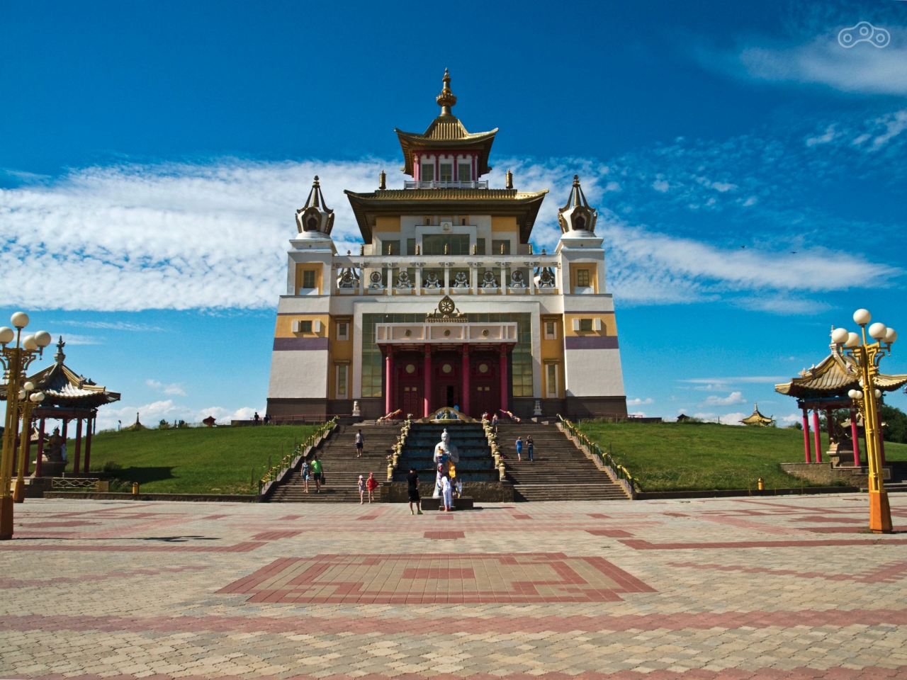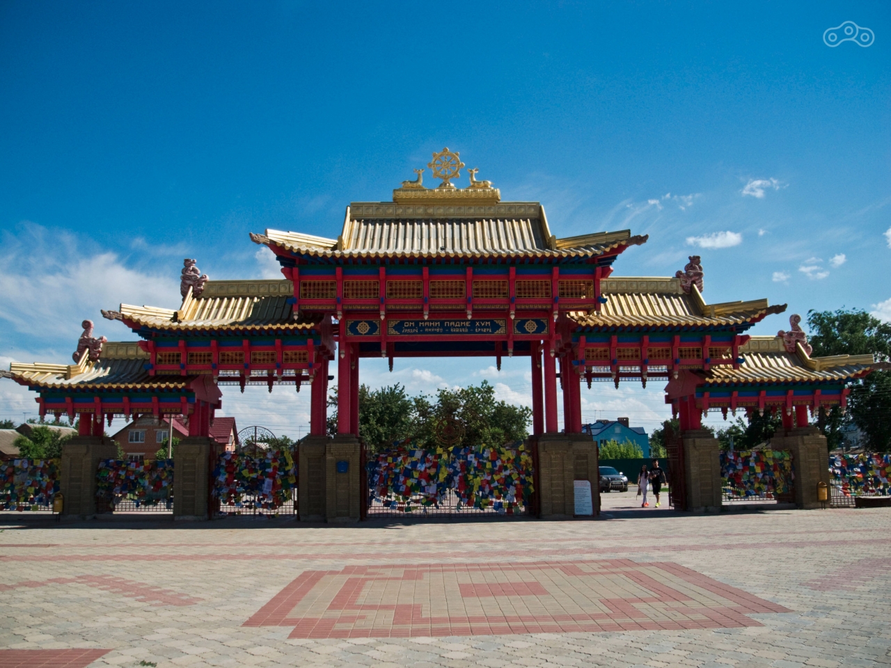 Я взял чашку и, выйдя на крыльцо, сел за пластиковый столик. Одна из хозяек кафе красила косяк входной двери и без умолку болтала. Я узнал, что она какое-то время тоже жила в Москве, но ей не понравилось и она вернулась, а вот сноха её всё ещё живёт там и ей нравится, и ещё некоторые подробности её семейной жизни. В этот момент к кафе подрулил автомобиль (модель уже не вспомню, что-то старое советское вроде было), из него вышли двое парней. Они договорились с хозяйкой кафе, что возьмут кофе и поедят привезённую с собой еду, за что с них взяли какой-то мелкий прайс как за аренду столика, тоже рублей 20 или около того. Столик был один, ребята присели ко мне. Оказалось, что едут они домой в Будённовск из Элисты, а один из них тоже мотоциклист – у Саши кафе-рейсер на базе Ижа, если не путаю, а остановились они исключительно потому, что проезжая мимо увидели мой мотоцикл. Мы немного поболтали о местных нравах, гаишниках и прочих нюансах езды на мотоцикле в Калмыкии и за её пределами, а также о мотопутешествиях. Саша рассказал о голландце Поле Ван-Хоофе, путешествующем на стареньком Moto Guzzi по России, и его приключениях. В процессе разговора хозяйка кафе, красившая дверь, не забывала вставлять своё мнение по всем обсуждаемым нами вопросам. В частности не смотря на то, что она сама какое-то время жила в Москве, мне пришлось ей объяснять, что те самые пафосные богатые «москвичи», которых так недолюбливают в регионах, это зачастую такие же приезжие из регионов, которые приехали в Москву тратить деньги, и в итоге «понаоставались». Правда была в её вмешательстве в разговор и польза – она посоветовала мне посетить в Элисте храм Будды Шакьямуни, рядом с которым на главной улице – улице Ленина - очень кстати находился отель-кафе «Байк-пост». Без неё я может вообще мимо города проехал бы.