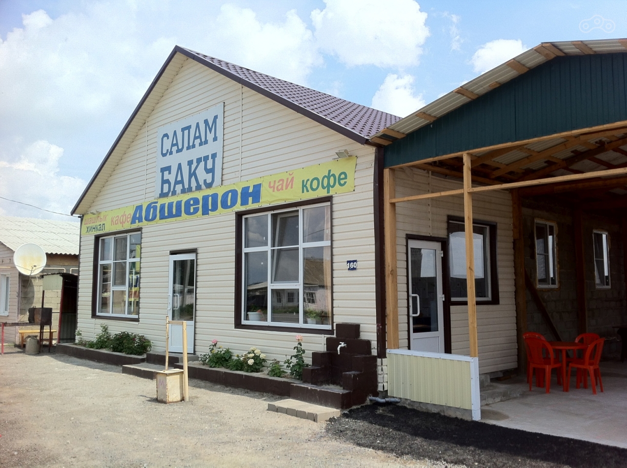 Калмыкия встретила меня палящим солнцем, порывистым боковым ветром и полным отсутствием какой-либо тени. Типичная южная Калмыкия, это полумёртвая бесконечная степь, в которой ничто не растёт, кроме низкой серой травы и редких невысоких кустарников. Изредка попадались деревца, но их было очень мало. Периодически в степи виднелись какие-то предприятия, судя по расцветкам имеющие отношение к Газпрому, а дорога, которая на вид выглядела нормально, на самом деле была волнистой с такой амплитудой, что с какой бы скоростью ты не ехал, тебя постоянно подбрасывало вверх. Причём это не огрехи настройки моей подвески, редко встречавшиеся авто подбрасывало так же. В одном месте я увидел в степи стадо коров, а рядом пастуха – парня на мотоцикле, который привстал на подножках и приветственно замахал мне рукой. Я помахал ему в ответ, не сбрасывая скорости. Через какое-то время меня так задолбали эти «качели», что я съехал с дороги и поехал по грунтовой колее, шедшей вдоль дороги. Правда она довольно быстро куда-то повернула, так что пришлось вернуться на дорогу. И тут я увидел придорожное кафе с поросшими вьющейся зеленью крыльцом. Я зашёл и заказал горячего зелёного чаю. Говорят, в Азии в жару пьют горячий зелёный чай, это помогает переносить жару. Над прилавком висело объявление, что Калмыкия безводная республика и воду следует экономить. Вполне логично, что бутилированные напитки в кафе стоили в полтора раза дороже, чем в Москве или том же Сочи. Чай правда обошёлся всего 20 рублей.