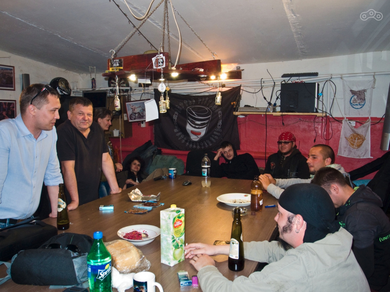 Мы доехали до продуктового магазина, там купили немного еды, потому что я был голоден, как волк, и поехали в клаб-хаус Гремящих Поршней. Клаб-хаус оказался большим кирпичным обустроенным гаражом в ГК. Там уже собрался местный мото-народ и во всю отдыхал. Когда я вошёл в клаб-хаус, у меня сразу возникло ощущение, что и тут я уже был, а этих людей я знаю всю свою жизнь. У меня вообще на лица память хорошая, но тут было полное ощущение, что их всех знаю. Хотя я могу поручиться, что в Балаково я до этого ни разу не был. Я даже не слышал раньше о таком городе (с географией у меня пробелы, да). С подачи девушки, возлежавшей в кресле, мне выдали стул со спинкой, и я наконец расслабился, уплетая купленный в магазине винегрет.