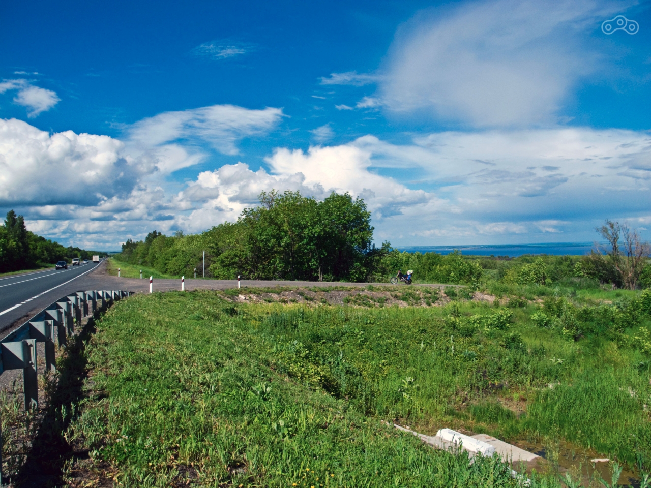 Пока я ехал по этой дороге, у меня было полное ощущение, что я тут уже был. Правда я, как ни силился, не мог вспомнить когда. На P-228 в сторону Самары велись ремонтные работы, но пробок не было, не смотря на то, что основую часть трафика составляли фуры, потому что трафика было не много. Единственное, что сильно напрягало, это невозможность ехать стоя – боковой ветер был такой силы, что даже сидя приходилось держать мотоцикл в небольшом наклоне. Из-за этого приходилось часто останавливаться, чтобы дать отдых спине и заднице.