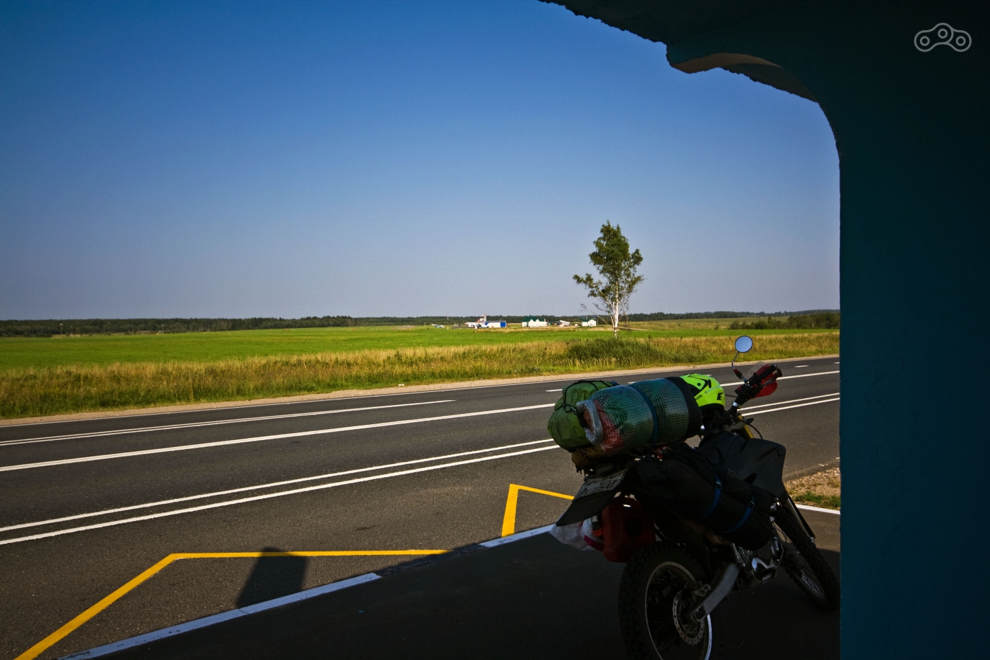 Возле аэродрома Орловка я сделал привал в тени автобусной остановки. Это было отличное место для отдыха – там была тень и лёгкий ветерок. Когда же завёлся, я обнаружил, что у меня на исходе топливо, поэтому немного вернулся до АЗС Сургутнефтегаз. Бензин на этой АЗС оказался странным на запах – он пах спиртом и ароматизаторами. Однако мотор его принял хорошо, как в других случаях заправок на АЗС этой марки.