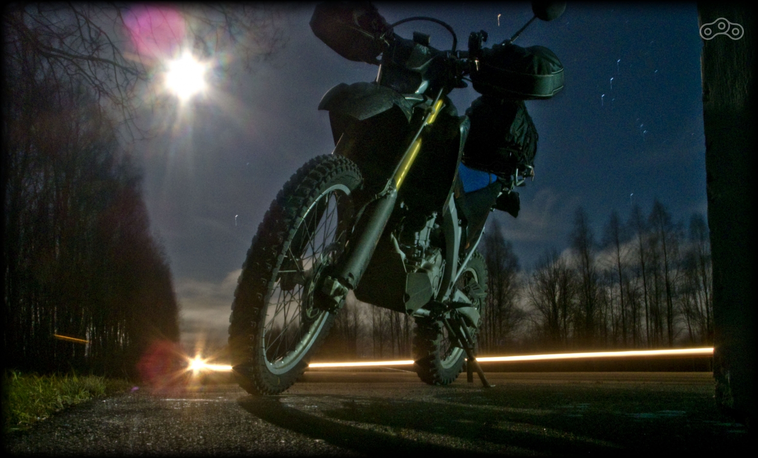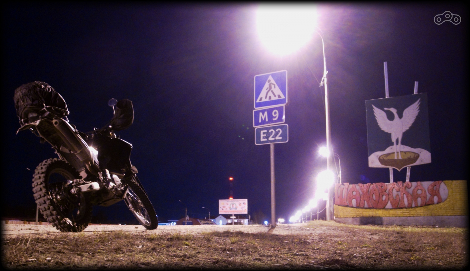 Определившись с вариантом экипировки ног, я решил поехать за МКАД подышать воздухом. Направлением было избрано Новорижское шоссе (М9), а конечным пунктом ориентировочно город Ржев. Погода благоприятствовала – дождь закончился и дорога была уже преимущественно сухой и чистой, светила яркая почти полная луна и звёзды. Единственное, что напрягало, это периодические резкие порывы бокового ветра на открытой местности. Это мешало ехать в стойке, т.к. у колёс 21/18 достаточно большая парусность – мотоцикл переставляло.