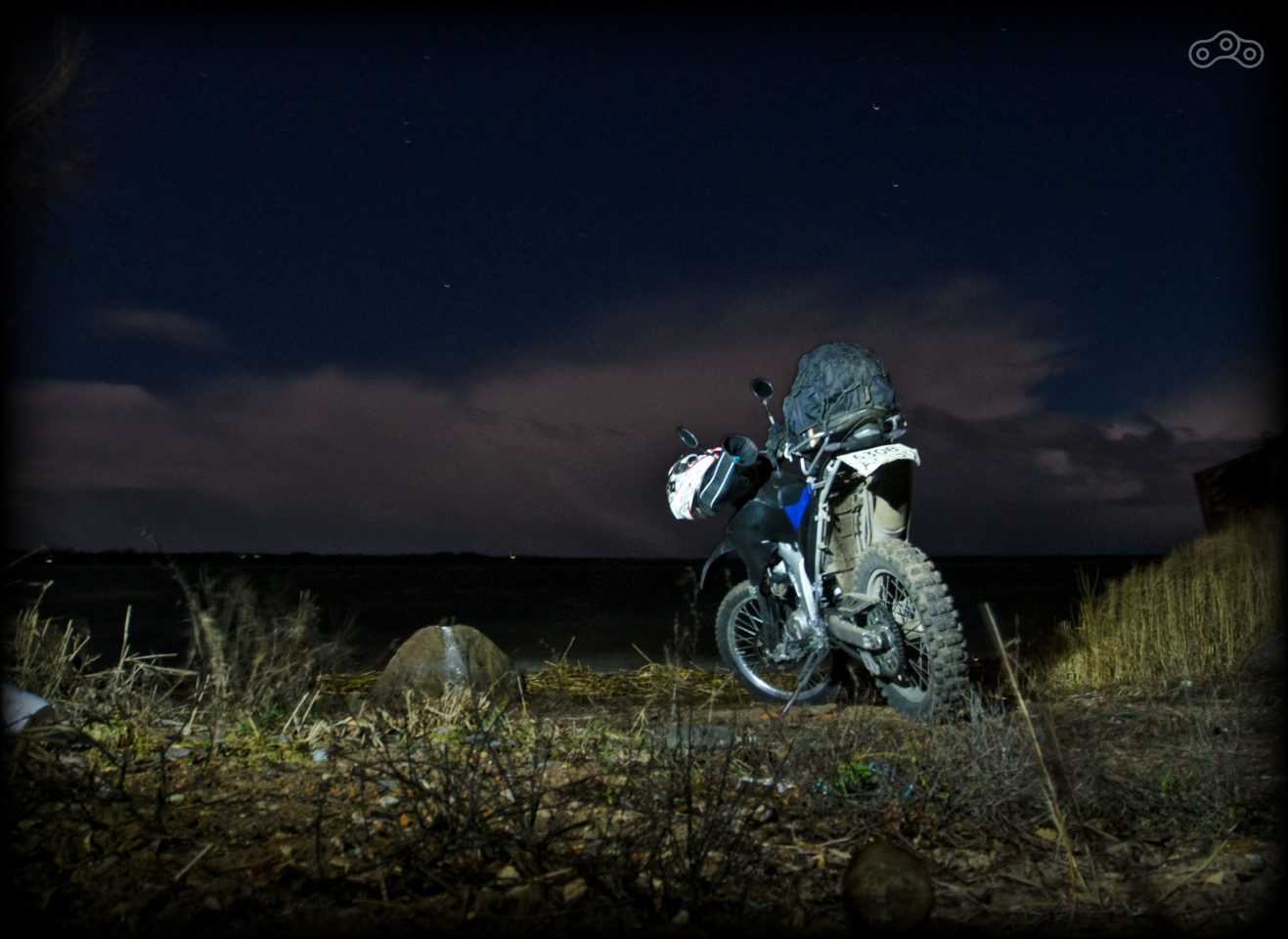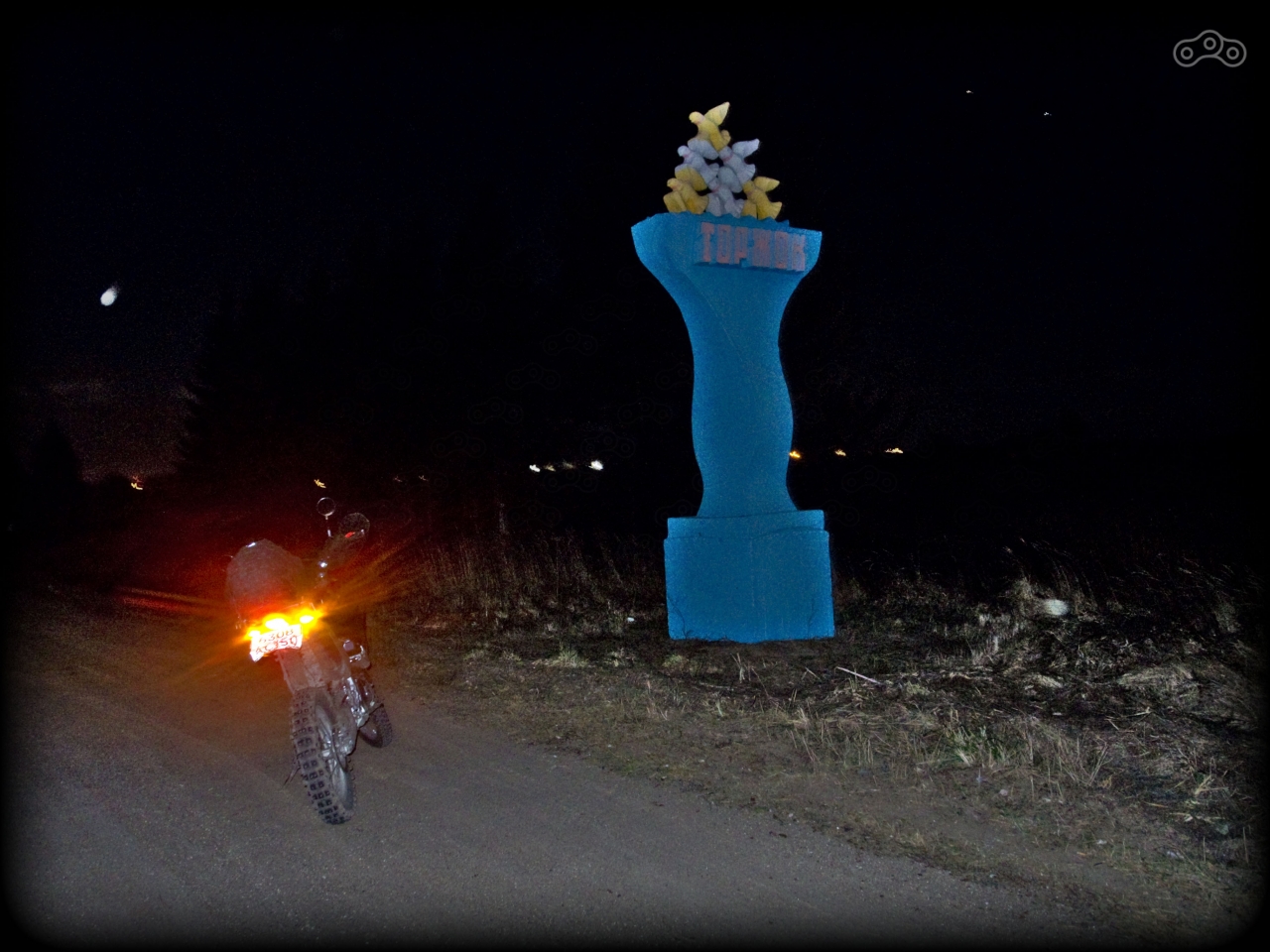 Примерно в районе часа ночи я был уже в Осташкове. Покрутившись по городу, я нашёл работавшее кафе-ресторан, возле которого тусовались в хлам пьяные местные. Оставлять без присмотра мотоцикл в такой компании мне не хотелось, поэтому я поехал искать дальше. Остановившись у ёлочки в центральном парке, я попробовал помучать яндекс, но Мегафон напрочь отказывался грузить карту. Я таки заставил свой телефон ловить сеть и нагуглил контакты местных байкеров из мотоклуба «Грифон». Поскольку к тому моменту было уже 2 часа ночи, я не стал звонить, а отправил СМС. А сам тем временем отправился искать место базирования их клуба. Как часто бывает, базируется он в промзоне на берегу Селигера. Ответа на СМС я не получил, видимо ребята уже спали, поэтому посидев на берегу полчасика я двинул дальше. Зависать на берегу на отдых было не вариант – с озера дул сильный пронизывающий холодный ветер.