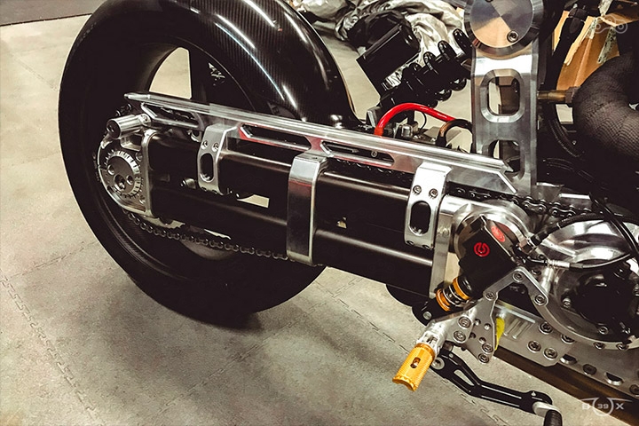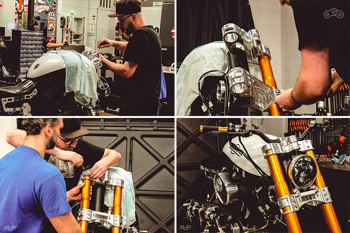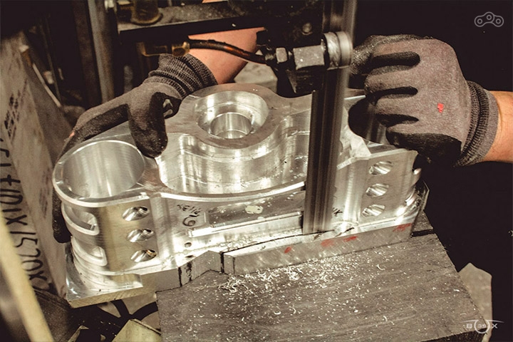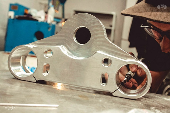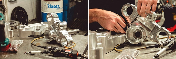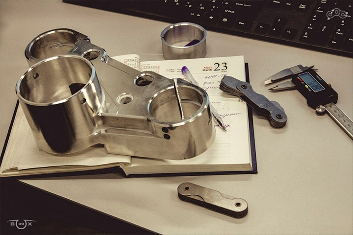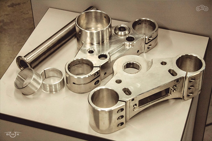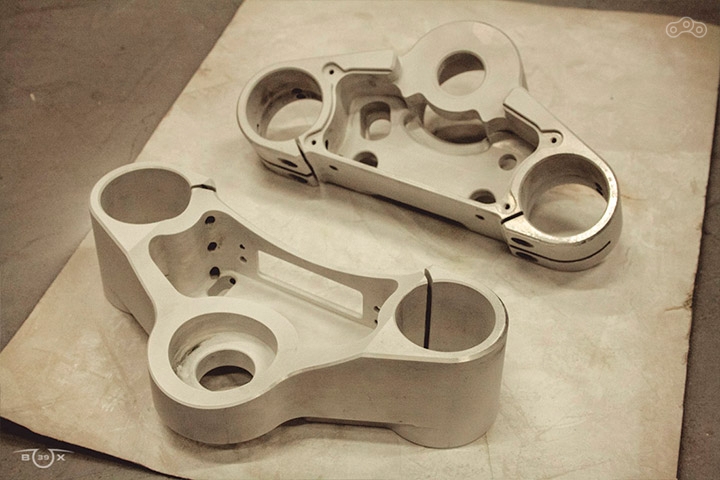 Чтобы сохранить всю аутентичность проекта, мы выбрали для траверс алюминий 6061Т6. Из этого сплава сделаны все детали мотоцикла.