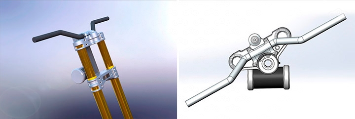 Дальше мы стали решать целый комплекс задач, которые начинались всего с одного пожелания: выпрямить спину пилота. На мотоцикле стояли клипоны, из-за чего посадка была неудобной. Также клипоны тянули за собой еще одну особенность: малый угол поворота руля. Если его увеличить, то ручка упрется в бак.