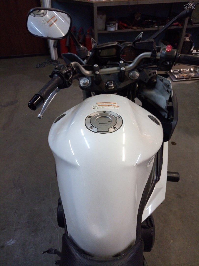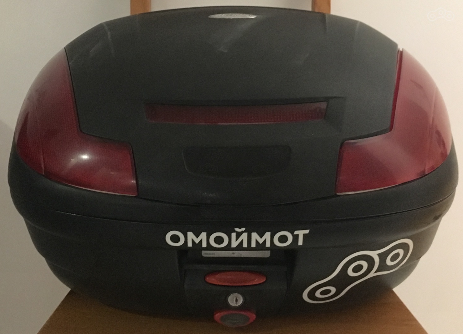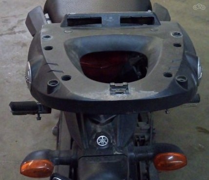Центральный кофр Givi E470 SIMPLY III - 47 литров, к сожалению, при столкновении он забрал с собой часть площадки, но остался цел, поэтому без креплений.
