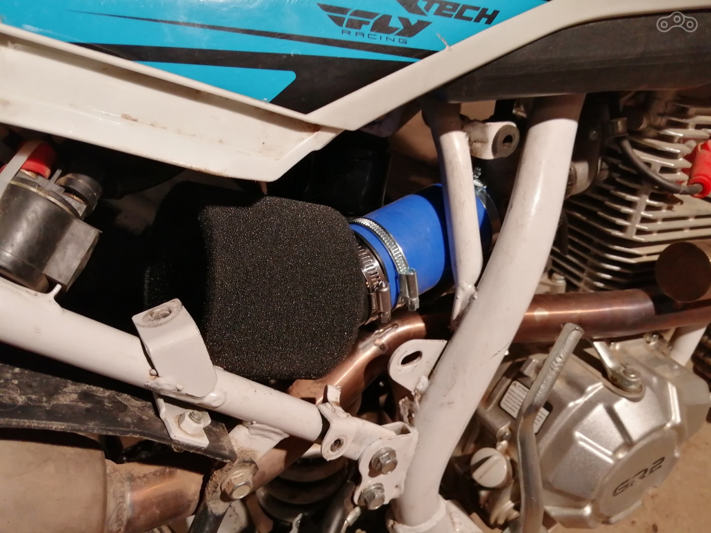 Также пришлось убрать штатные фильтр бокс с бумажным фильтром, так как его не было в продаже (даже на роллинг-мото не было в наличии, мониторил два месяца). сделал как большинство владельцев - поставил нулевик с али на 49 мм, соединив все с карбом патрубком радиатора 375-1303030-С диаметром 50 мм и длиной 100 мм через кусок водопроводной пластиковой трубы диаметром 50 мм.